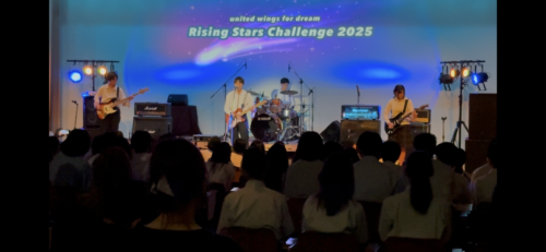 7月26日(土)阪南大学高校さんの Rising Stars Challenge 2025(1年生練習試合)に出演させていただきました!これは、まだ出演の機会がほとんどない1年生に出演の機会をつくる目的で阪南大の先生がつくってくれたイベントです。オープニングに参加校の紹介の動画が流れましたが、本当のライブ会場のようなとてもかっこいい動画でテンションが爆上がりました。また、どこの学校の1年生バンドもすごく上手に演奏していてとてもいい刺激をいただきました。日新高校からは2バンド、「Don’t say “Lazy”」と「水平線」をそれぞれ演奏させていただきました。演奏が下手でも元気だけは他の高校さんに負けないようにしていきたいと思いますし、本日参加されたバンドさんとはこれからいろいろなイベントでご一緒することになると思いますので、お互い成長していける仲間として仲良くしてほしいです。また、最後に阪南大学高校の部長さんから1年生のみんなに向けてメッセージがありましたが、とてもいい話だったので1年生のみんなの心に届いたと思います。