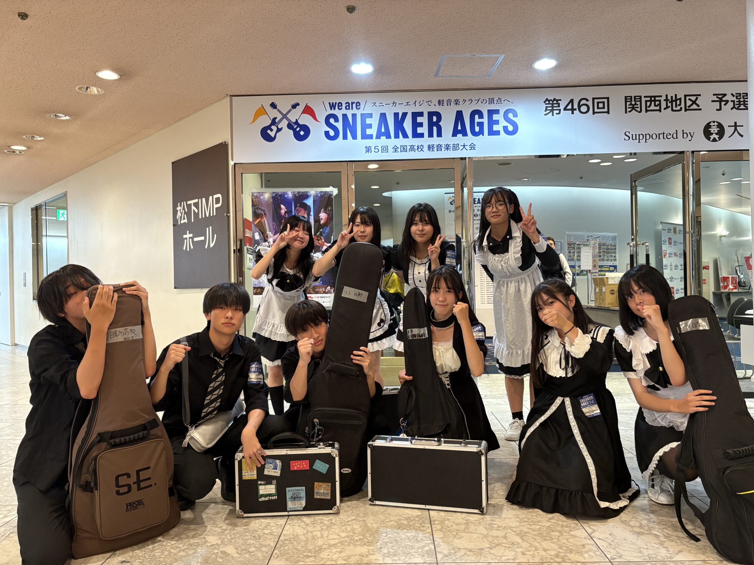 8月21日(木)we are SNEAKER AGES 関西地区予選会3日目 に出演させていただきました。このSNEAKER AGESは、6月に動画予選会があり、その次に関西地区予選会が3日間あり、この予選会の上位5位までが関西地区グランプリ大会に進出し、そのグランプリ大会で6位までが12月に行われる全国大会に出場することができます。日新高校 軽音楽は、全国大会出場を目指してこの夏グラブ一丸となって頑張ってきましたが、惜しくも5位以内に入ることができず悔し涙を流す結果となりました。しかし、今年の猛暑の中ほぼ毎日練習してきたことはクラブの成長に、また個人々々の成長につながりましたし、たくさんの楽しい思い出ができました。いままで支えていただいた皆さんに感謝したします。スニーカーのスタッフの皆さん、共演校の皆さん、会場に応援に来ていただいた家族の方々、ありがとうございました!