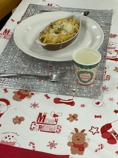 12月22日の活動はクリスマスも近いので、デコレーションケーキとマカロニグラタンを作りました。
